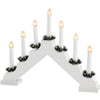 A bright and warming candlebridge with 7 warm white LEDs. Battery operated, this red or white candlebridge is the perfect ornament for any mantlepiece.