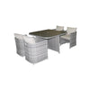 The Capri 6 Seater Round Dining Set - 1.4M In Stylish Grey Rattan Offers Comfortable Dining For Up To Six People. This Set Is Made From The Highest Quality Weather And Water Resistant Polyethylene Wicker, Woven Around A Powder Coated Aluminium Frame. This Set Comes Complete With Deep Seat Cushions, A 5Mm Tempered Glass Table Top And A 2.7M Crank And Tilt Parasol. Dimensions: Table: H73 X W140 X D140Cm; Chair H87 X W60 X D57Cm; Parasol: H240 X W265 X D265Cm.