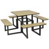 The Yates Mini Corner Dining Set is crafted from resin weave hand woven over a light but strong aluminium frame and has been developed with both comfort and style foremost. A generous-sized corner sofa is complimented by an easy height adjustable square table ceramic glass table top which is scratch resistant and tempered for durability. Two benches add extra seating. Dine high or relax low with this on-trend corner set. This range is further enhanced by a deep seat and soft supporting back cushions which are a durable mix of acrylic and polyester with a full inner waterproof coating. The luxury weave is a beautiful blend of 3 colours in a wide weave which gives a superior finish to the collection. 2-year limited manufacturer's warranty. Cover included. Dimensions: Adjustable Table: H48-68 x W100 x D80cm; L/H Sofa: H78 x W78 x D86cm; R/H Sofa: H78 x W178 x D86cm; Corner: H78 x W78 x D86cm.