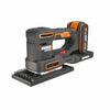 The WORX WX822 cordless detail sander is compact, lightweight, and designed for ease of use.\n\nThe WX822 shape allows easy access in more difficult conditions, such as corners and tight spaces. With dust stop micro filter feature, which allows high debris removal on a variety of materials and makes sanding jobs cleaner and better for you.\n\nThe sander has a low vibration feature which reduces the tingling and numbness in fingers, and an increased comfort grip.\n\nThe cordless detail sander is part of the WORX 20V Powershare battery platform, allowing you to share your 20V Max li-ion battery with your other WORX Garden & DIY tools.